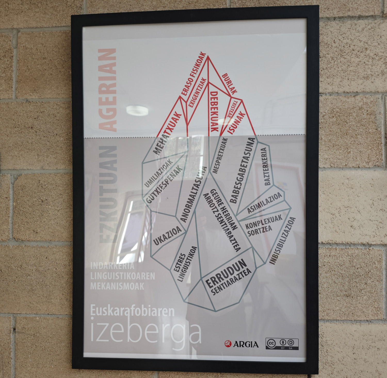 Icebergean ikusten diren egoerak komentatu dituzte ikasgelan eta “euskaldunok bizi ditugun zapalkuntzak ikusaraztera eta horien inguruan hausnarketa egitera” gonbidatu nahi dituzte ikasleak. Zeharkako proposamena ere bidali diote ARGIAri, euskarafobiaren inguruko Larrun monografikoa bezalakoak gelaratzeko ARGIA ikasgela bat sortzeak “lana asko erraztuko” liekeela esanez.