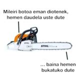 Proposamenen bat, kritikaren bat edo esateko zerbait baduzu grabatu ahots mezu bat eta bidali mezua: 669 36 29 82 zenbakira Telegram edo WhatsApp bidez edo beranduegi@argia.eus helbidera e-postaz.