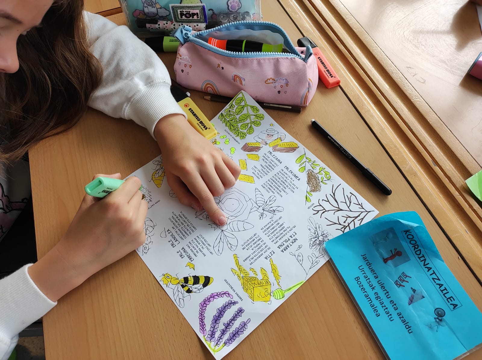 Jasotako ezagutza berrien emozio horiek guztiak ongi barneratzeko, erleen piko-pikoaren jolasa azaldu die Oihanak, eta hura margotu bitartean, ikasleei sortu zaizkien azken kezkak galdetzeko aukera izan dute beste behin.