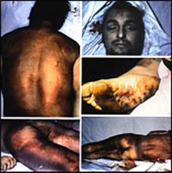 Joxe Arregiren gorpu torturatuari ateratako argazkiak Zizurkilgo hilerrian.