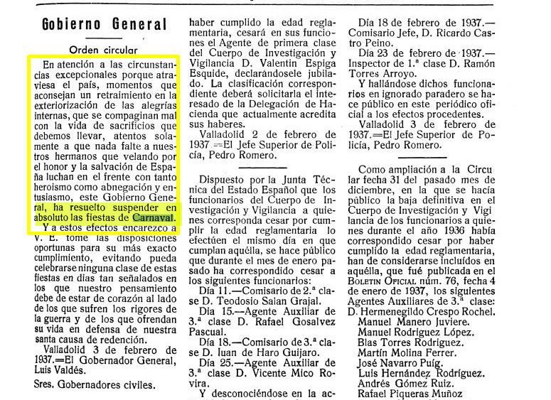 1937ko otsailaren 5eko zirkularra, Luis Valdes militarrak Valladoliden sinatua.
