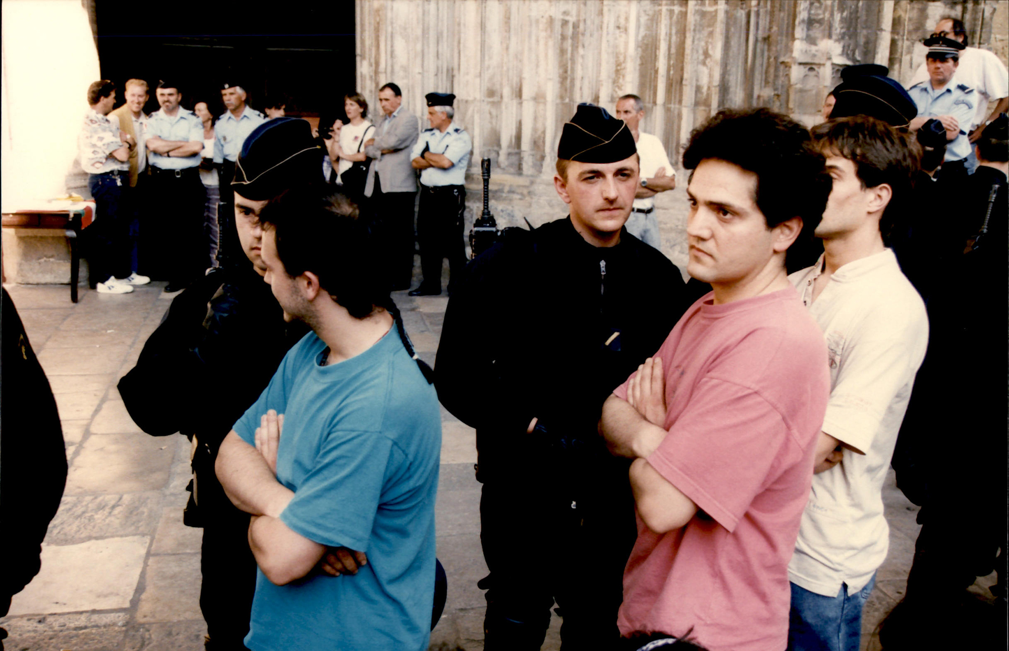 Ekintza ausarta egin zuten hamar euskal deportatuk 1996ko ekainaren 8an: Euskal Herrira itzultzea erabaki eta Baionako katedralean itxialdia hasi zuten. Lurrean eserita ageri zaizkigu, ur botilak ondoan, aldarrikapen orriak ikurrinadun mahaian… Eta tenpluaren kanpoaldean, berriz, bi harresi aurrez aurre: lagunak eta poliziak.