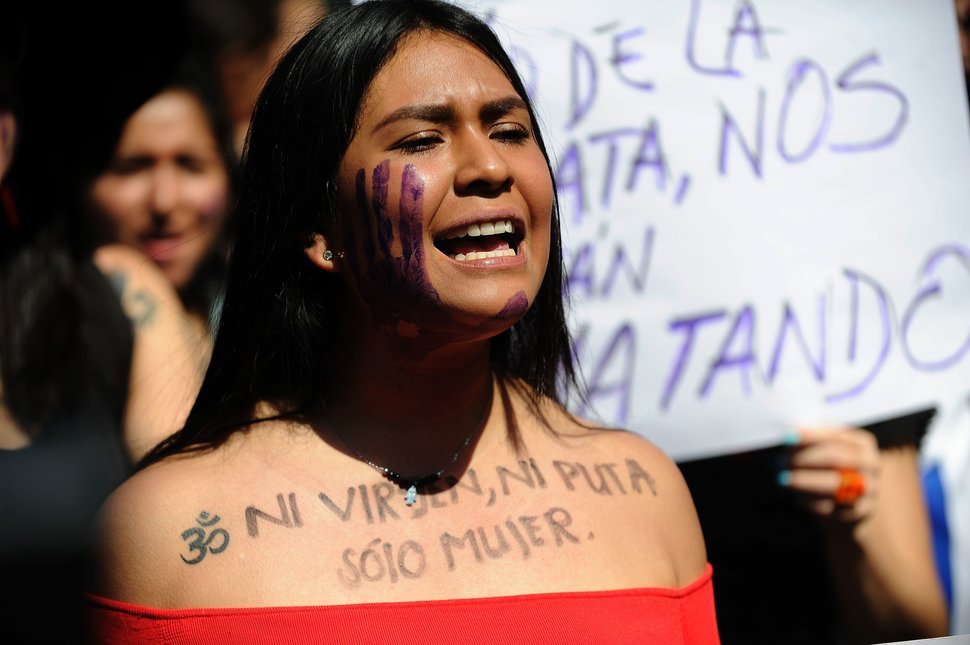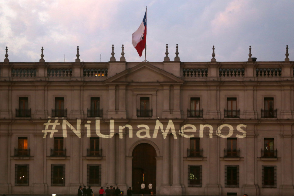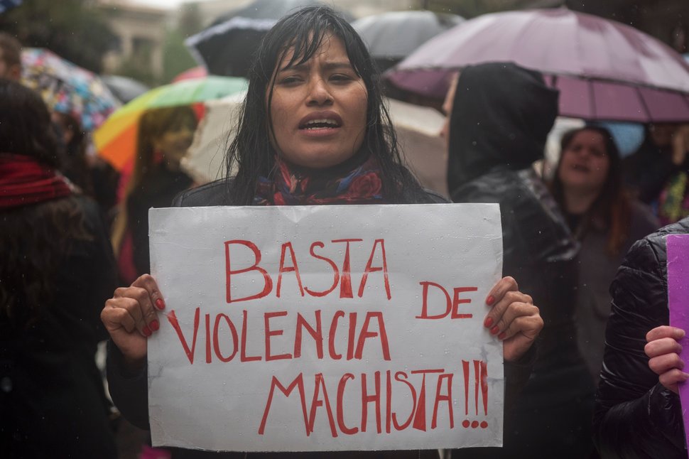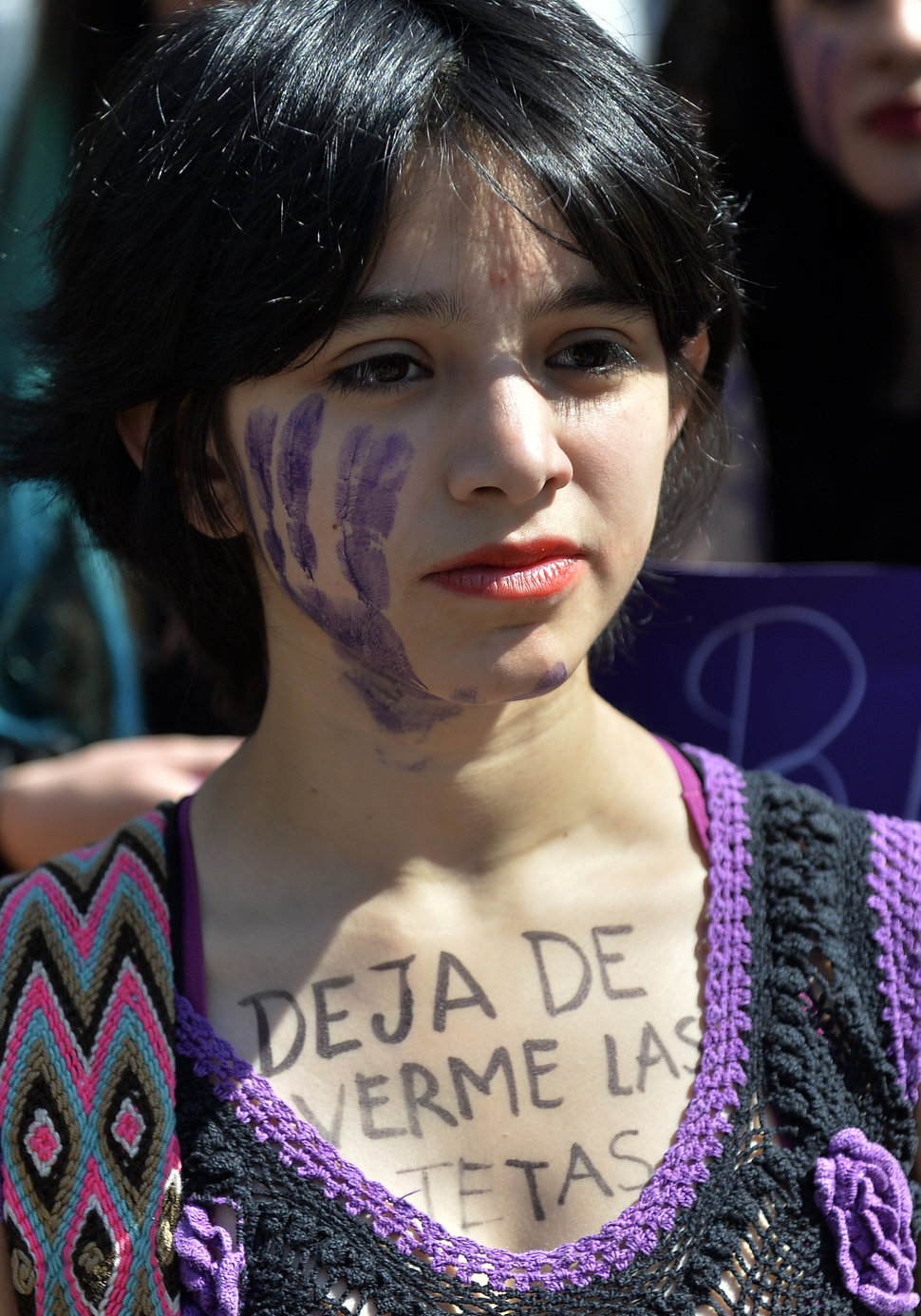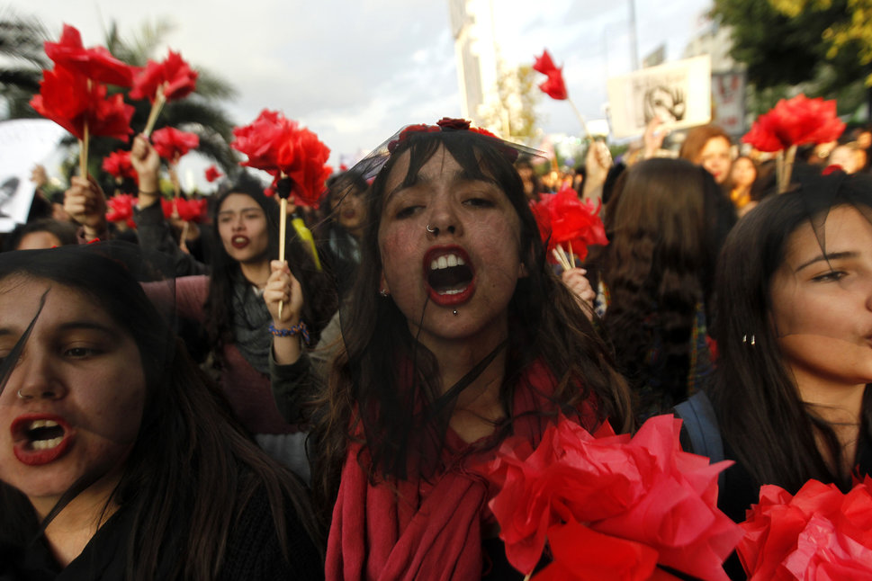 CHILE, VALPARAISO - OCTOBER 19: Feminist activists protest on the streets during a national demonstration called Ni Una Menos (not one woman less) to demand justice for all women victims of gender crimes and in repudiation to the murder of Florencia Aguirre, a nine year old girl who was strangled, burned and buried by his father in the city of Coyhaique on October 19, 2016, Valparaiso, Chile. (Photo by Marcelo Benitez/Latincontent/Getty Images).