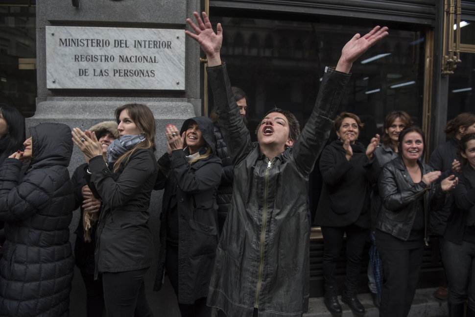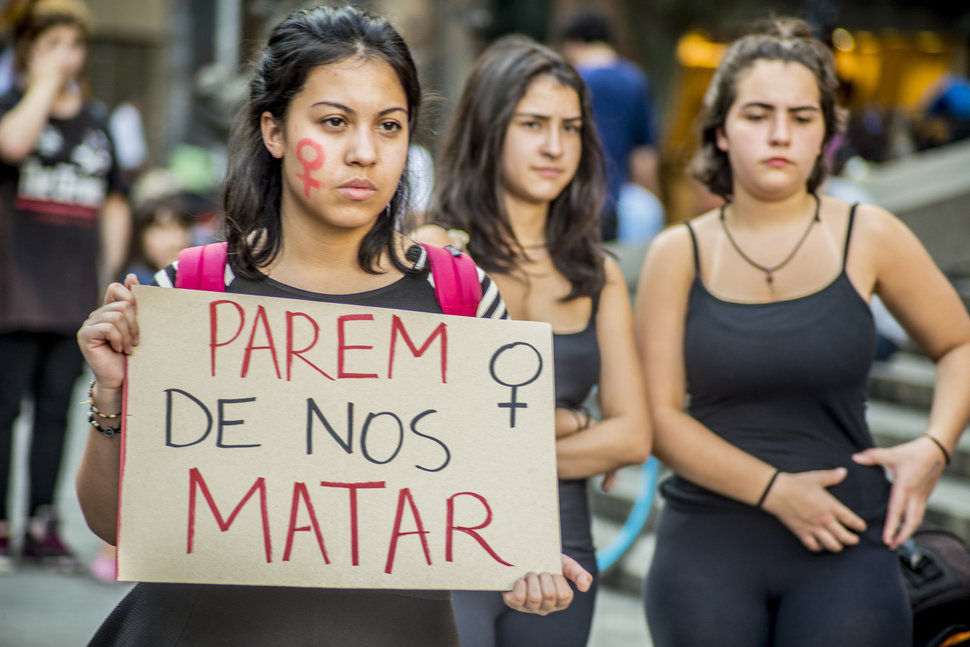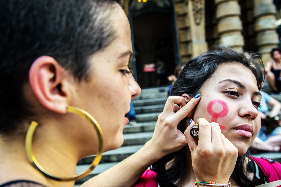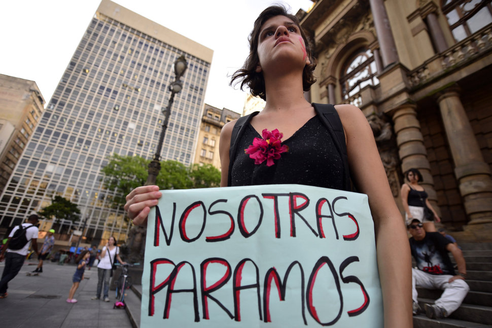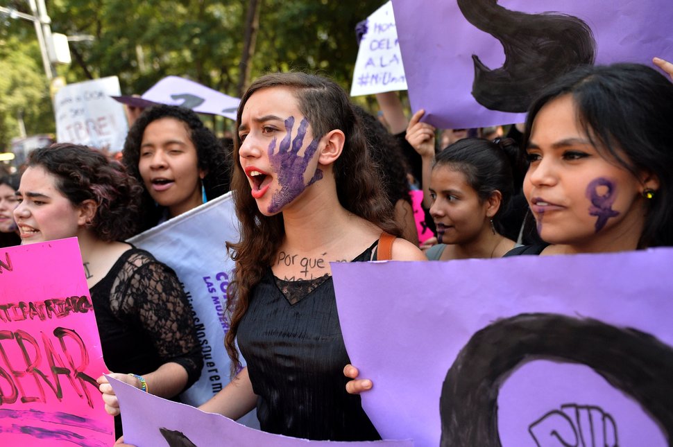 CHILE, VALPARAISO - OCTOBER 19: Feminist activists protest on the streets during a national demonstration called Ni Una Menos (not one woman less) to demand justice for all women victims of gender crimes and in repudiation to the murder of Florencia Aguirre, a nine year old girl who was strangled, burned and buried by his father in the city of Coyhaique on October 19, 2016, Valparaiso, Chile. (Photo by Marcelo Benitez/Latincontent/Getty Images).